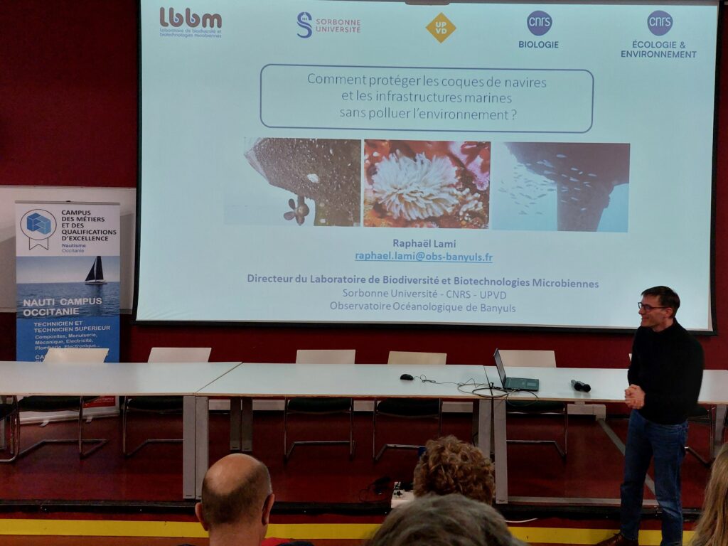 Le Nauti Campus Occitanie a invité, Raphaël LAMI, du Laboratoire de Biodiversité et Biotechnologies Microbiennes (CNRS/Sorbonne Université), et Maxime DELBURY, représentant de la société Nautix, à croiser leurs regards sur un enjeu majeur du monde maritime : la lutte contre le biofouling. Entre pressions réglementaires et innovations biomimétiques, retour sur une conférence au cœur de la transition environnementale du nautisme.